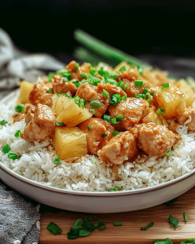 A delightful dish that combines the sweetness of pineapple with savory chicken and fluffy rice, perfect for any occasion.