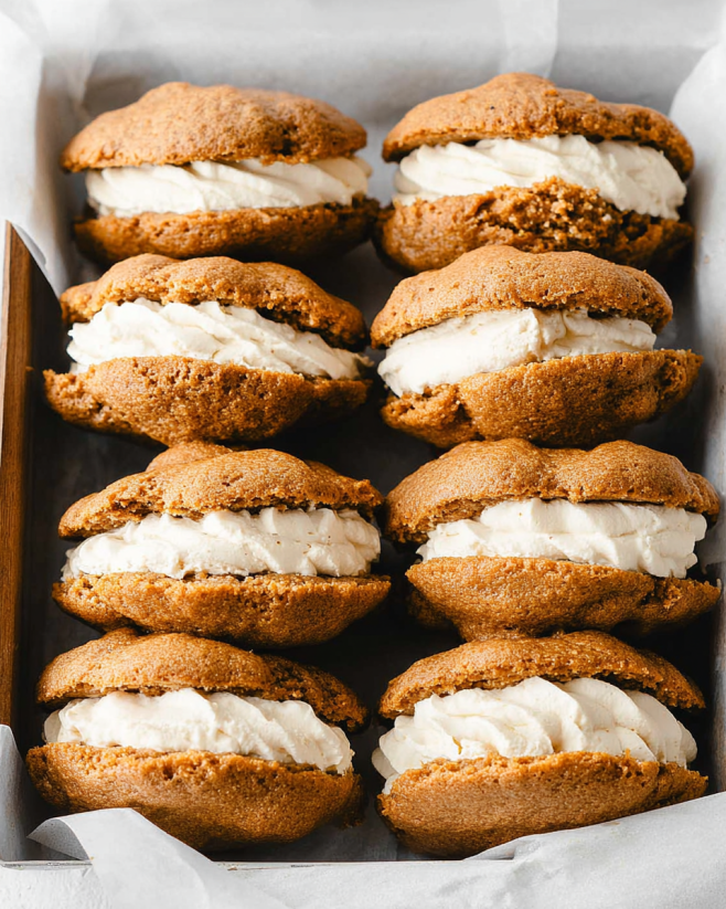 - Garnish with Whipped Cream: Top each whoopie pie with a dollop of whipped cream for an extra touch of sweetness. You can also sprinkle some cinnamon or nutmeg on top for added flavor.