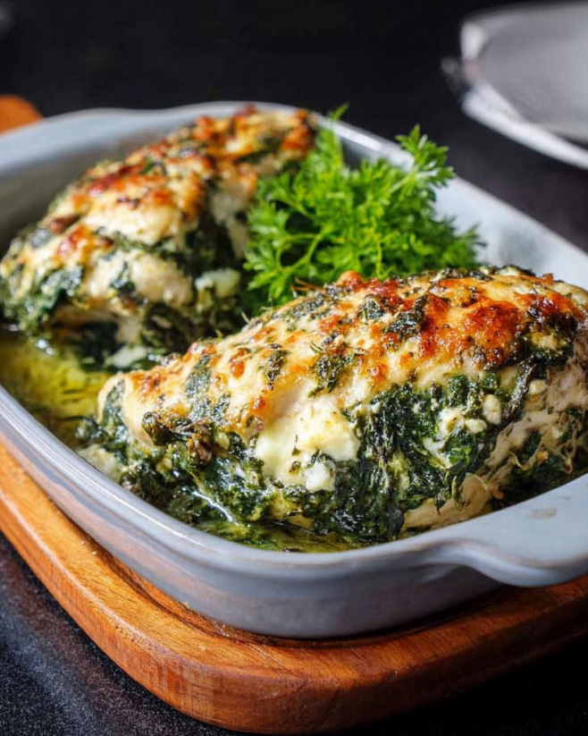 Don’t forget to garnish your Spinach Feta Baked Chicken with fresh herbs like parsley or basil before serving. This adds a pop of color and freshness to the dish, making it even more appealing.